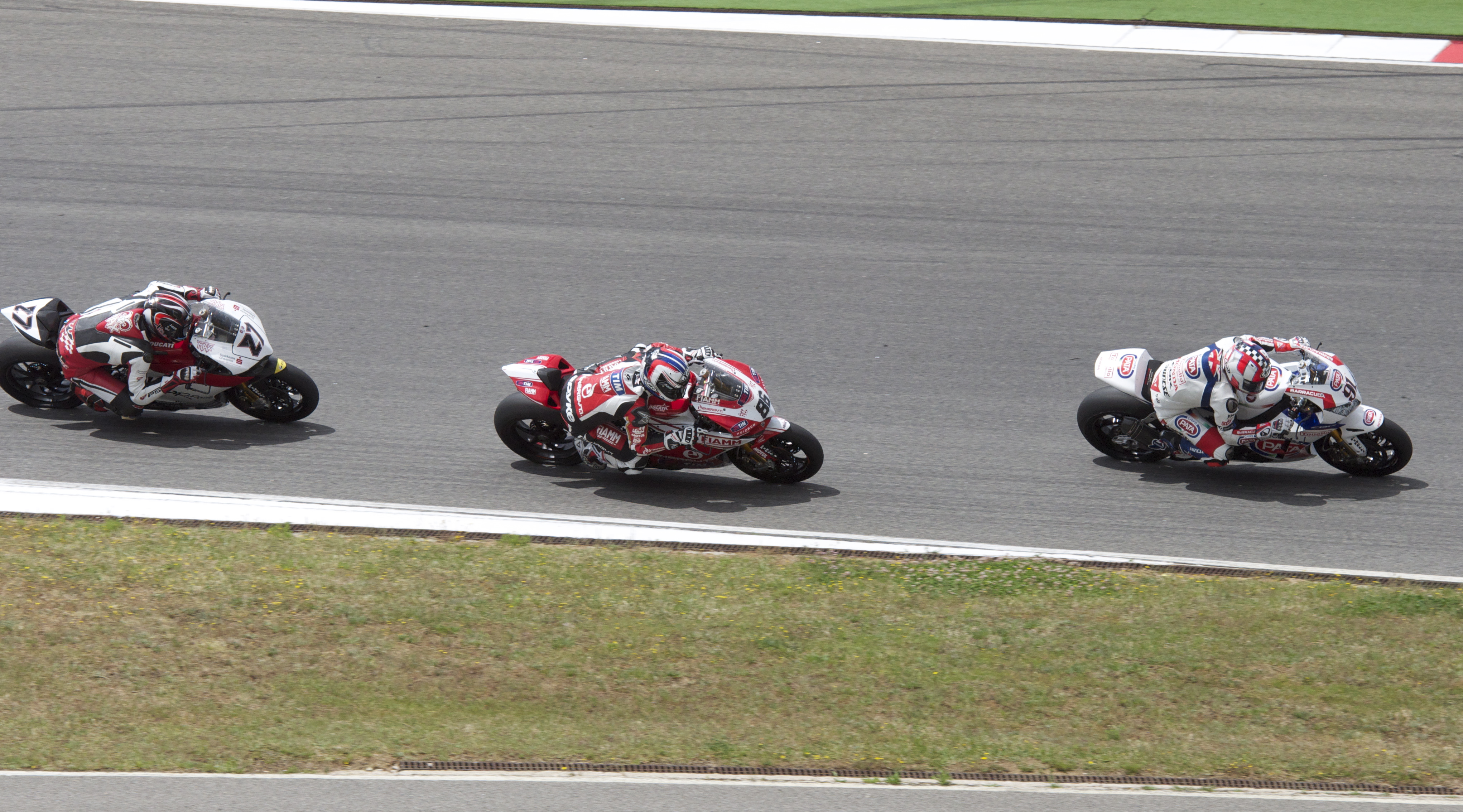 Max Neukirchner (27), Aryton Badovini (86), and Leon Haslam (91), Superbike