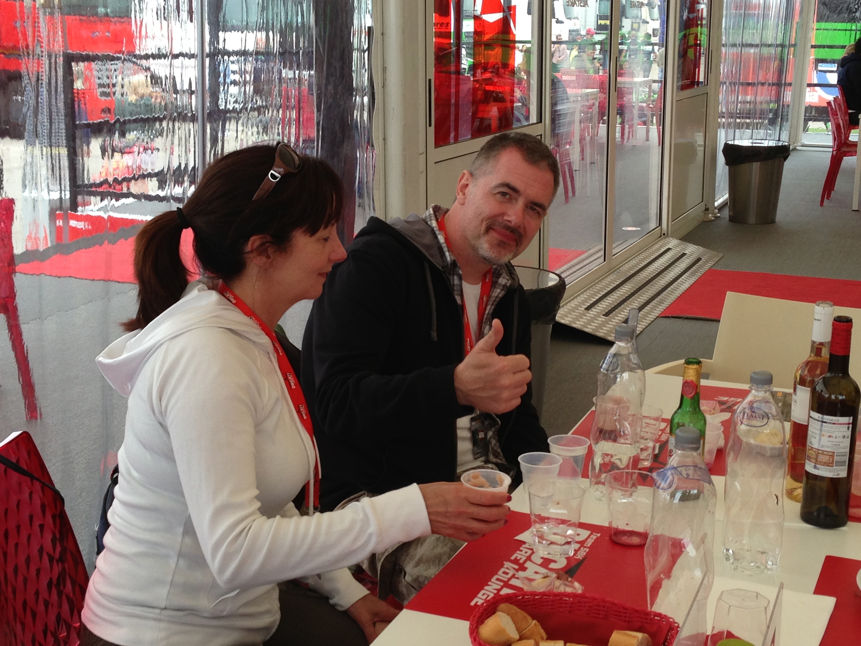 LB and I relaxing between events in hospitality