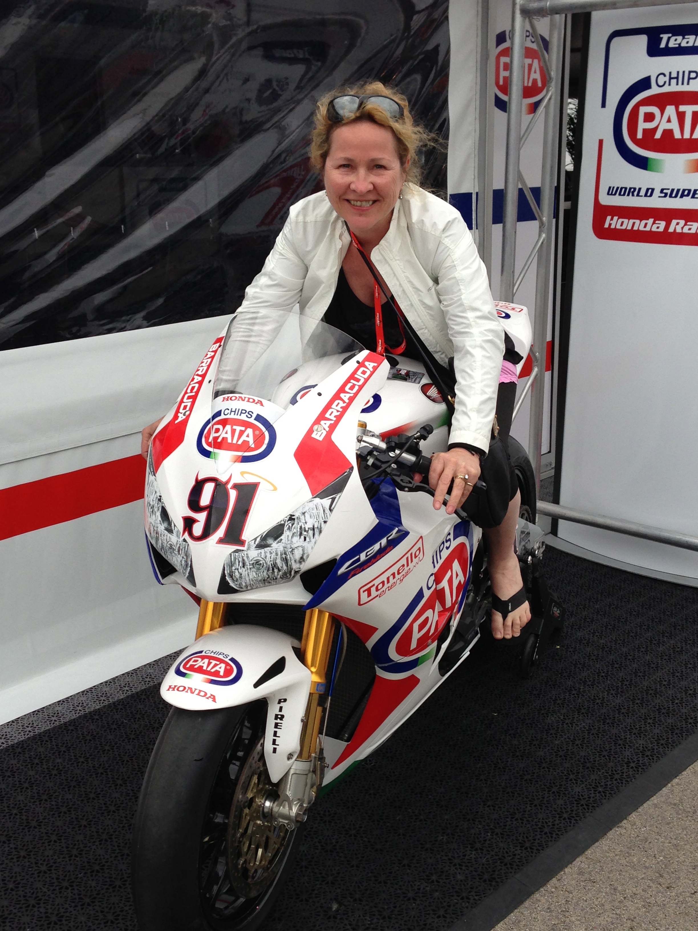 LB trying the Honda on for size. Think she could use some proper boots though.